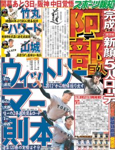 【3/24付 スポーツ報知 #巨人 】 開幕まであと3日 __________阿部巨人__________ 完成‼️球団初‼️新顔5人ローテ‼️ 阪神竹丸 ハワード 山城 中日ウィットリー マー 則…